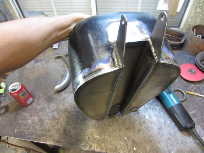 This is the new oil tank fir kris s bike "Rick James Bitch".The bike frame has been shortened 6 inches from the length of the first hardtail,sooo new oil tank!it has a tunnel that hugs the seatpost tube,the other side i beadrolled to mock a keg style with a deep inset dome.I will be posting this bike soon,LONG,and SHORT. SLIM 951 217 8814